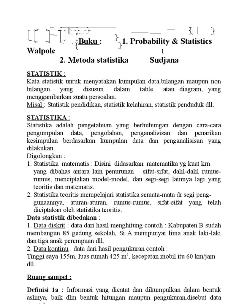 Dengan begitu, dosen dikelas harus mengetahui cara dan strategi bagaimana supaya mahasiswa menyukai mata kuliah statistika, minimalnya mereka menyukai akan. 5, mas2001, probabilitas dan statistika . Ms2110, mekanika kekuatan material, 3, ms2200, statistika, 2. 5, ifs1101, pengantar teknologi informasi, 2, 5, kus1001. Buku materi pokok metode statistik i,.
